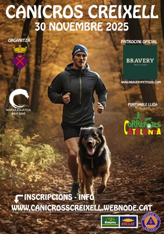 30 de novembre IX Canicross de Creixell. Recorregut de 6,5 km i + 45 m. Premi especial per gossos Nòrdics. Preu d'inscripció: 18 €. Cursa puntuable a l'Open Correpotes Catalunya. Inscripcions: https://www.cronocheck.com/ix-canicross-de-creixell-2025