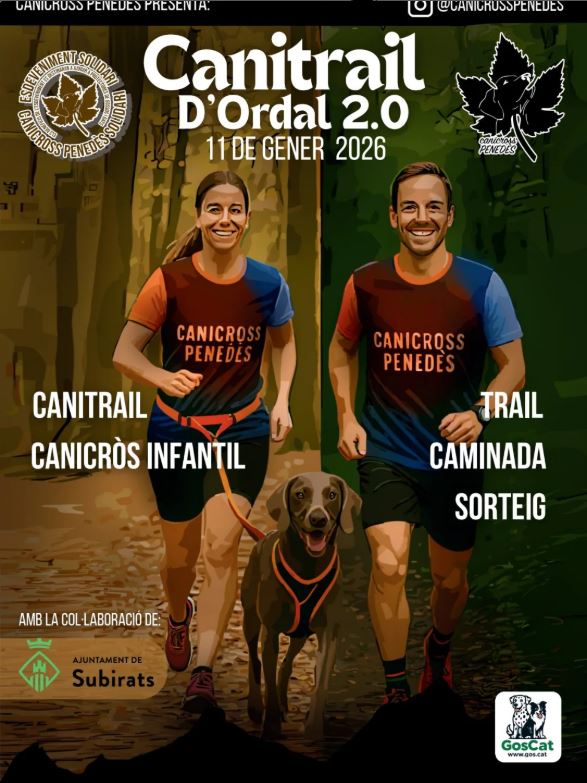 2n Canitrail d'Ordal (Subirats) El pròxim 11 de gener tornem a l'Ordal, tornarem a gaudir d'una autèntica festa solidària, amb canitrail, trail i caminada. Segueix la cursa a instagram: https://www.instagram.com/canicrosspenedes/ Recorregut 2025: https://ca.wikiloc.com/rutes-canicross/canitrail-d-ordal-2025-197715532 Vine a veure'ns a l'estand de CaniX!